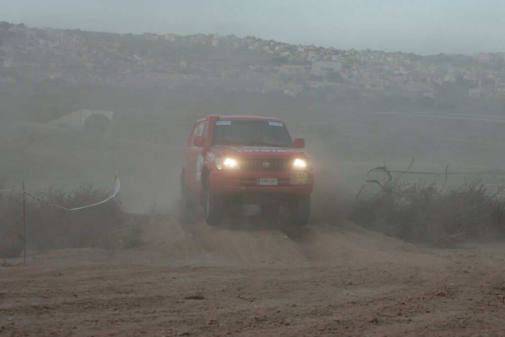 Al llegar a la especial se acabaron las sonrisas: terreno pétreo, con polvo denso arrastrado por un viento desapacible, poco agarre en un recorrido artificioso y forzado, todo él marcado con cintas. Y sobre todo, agujeros y socavones del tamaño de los carros de combate que pasan por la zona. Terminamos la especial algo asustados, sextos de siete inscritos en nuestra categoría, y por delante de los tres que ya se habían retirado: dos averías y un vuelco con evacuación en ambulancia.