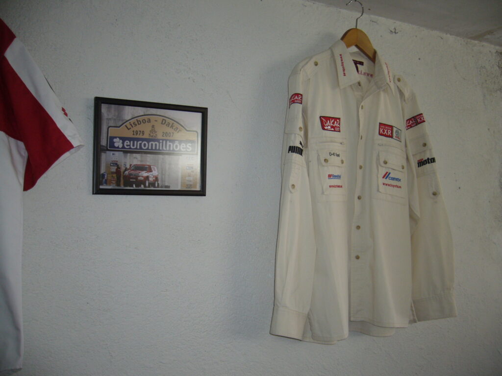 De éstos hay cuatro, en concreto cuatro camisas que conservo de cuatro experiencias en carreras. La última de ellas cobró un valor especial un año después de lucirla: es la camisa del Dakar de 2007, el último africano, en el que fui asistencia de Xavi Foj, y con la que subí a acompañarle en el podio del Lago Rosa. Junto a cada una de las cuatro camisas cuelga una foto, y la de ese Dakar ha envejecido deprisa: se ve el Land Cruiser 120 de Xavi en el momento de tomar la salida frente a la formidable fachada del Monasterio de los Jerónimos en Lisboa, a tiro de piedra de la Torre de Belén. En el ambiente flota la sensación que nos ronroneaba en la cabeza esos días: nos vamos a Africa, y hay que llegar a Dakar como sea. En aquellos días claro que no sabíamos que iba a ser el último Dakar africano, y que no volvería a salir de Europa.