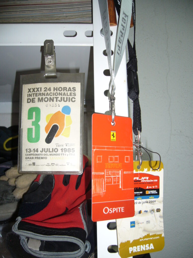 En el garaje hay también pases que reavivan la memoria. Los más actuales son de plástico, con colores corporativos, como el de una reciente peregrinación a Maranello en el que se lee: “Ferrari. Ospite” (más huésped que visitante). Estos modernos son fáciles de limpiar, con un trapo vuelven sus colores, sus brillos y sus recuerdos, y por eso me centro en el más antiguo de todos: una especie de sobrecito de plástico, ya tirando a rígido y grisáceo, que tiene dentro un papel añejo: el pase de prensa de las XXXI 24 Horas de Montjuic, las de 1985. Casi nadie se acuerda ya de aquella carrera absurda y maravillosa, que consistía en dar vueltas en moto durante un día por un parque en medio de la ciudad de Barcelona. Y sin embargo hubo una época en que los nombres de cada curva tenían un sabor épico, como el Karrouesel del antiguo Nürburgring o Eau Rouge en Spa, y a la vez se ligaban con el punto exacto de la ciudad en que se encontraban. La recta del Estadio, además de un punto del circuito, era la zona que pasaba frente al Estadio Olímpico inaugurado en 1929. La horquilla del Museo Arqueológico, además de estrecha y en bajada, era el acceso a la puerta principal del museo. Otros tramos tenían hasta canción popular, como aquella que decía: