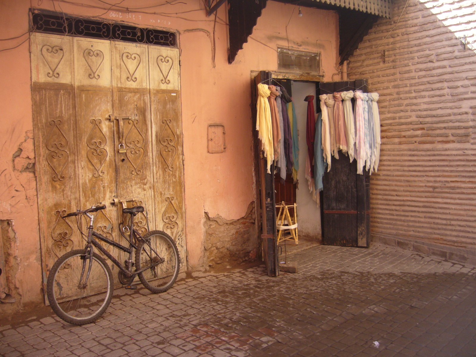 Al salir de Larache, con lluvia intensa y niebla intermitente, había encendido las luces del coche, antinieblas incluídas. Un rato después me dí cuenta de que el resto de los vehículos las llevaba todas apagadas. Aun no me había africanizado del todo. Llegando a Marrakech nos concentramos para afrontar el reto del día: cómo encontrar, en una ciudad de 1,6 millones de habitantes, un riad de cinco habitaciones ubicado en una callejuela a la que se llegaba por una calle peatonal a la que se llegaba desde un calle de la medina. La mezcla de Google Maps, sentido de la orientación y fortuna lo permitió: primero, rodando con mil ojos por las avenidas y rotondas de los alrededores, y luego cruzando la muralla por Bab Lalla Aouda Saadia para seguir por Dearb El Aisa y luego por rue Rachidia. Rodábamos despacio para no perdernos, aunque como siempre presionados por el ritmo enloquecido de las motos que te rodean como un enjambre de abejas. Mirando a la vez hacia delante, al iPad y por los retrovisores, vi en un momento que el usuario de la moto que estaba detrás llevaba el caso sin abrochar y conducía con una mano, porque con la otra sujetaba el móvil por el que hablaba. La siguiente vez que miré, era otro tío en otra moto, esta vez con sus retrovisores de varillas doblados hacia dentro para caber por sitios más estrechos. Antes de que la calle adelgazara tanto que el Celica no cupiese, lo aparcamos en un lugar aparentemente seguro y caminamos hasta el riad Djebel, un sosegado oasis de silencio en medio del frenesí de Marrakech.