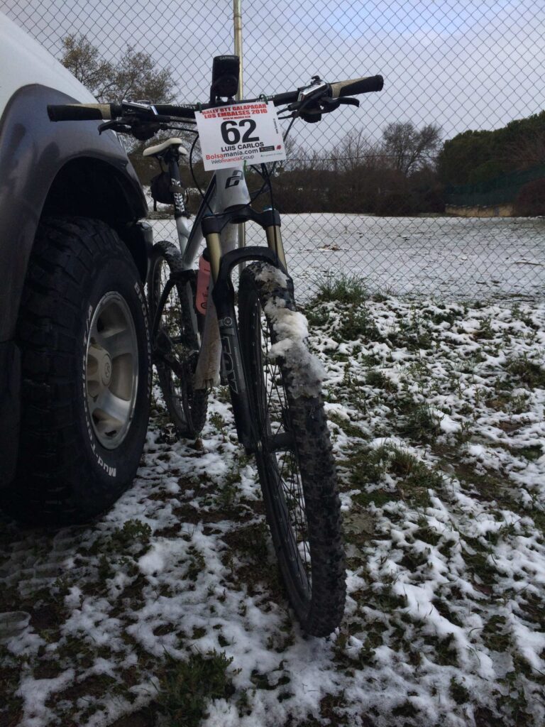 Sí que aprendí mucho en una ruta de 50 km. e índice 61 en Quijorna: con 37 provincias españolas en alerta por viento, lluvia, nieve y frío, no me quedaba duda alguna en la salida de que iba a ser una mañana intensa. Contra el viento no me quedaba más que resignación y apretar los dientes; no hay alternativa cuando se rueda con el pulsómetro disparado tirando de desarrollo corto en llano ¡a menos de 10 km/h! Lo del barro fue una buena lección comparativa, porque peleando por mantener a la vez el equilibrio y la dignidad, me di cuenta de que una bici de montaña se lleva igual en barro que el Land Cruiser en arena: desarrollo tirando a corto, siempre con tracción, y un derroche de delicadeza para cambiar o simplemente mantener la trayectoria.