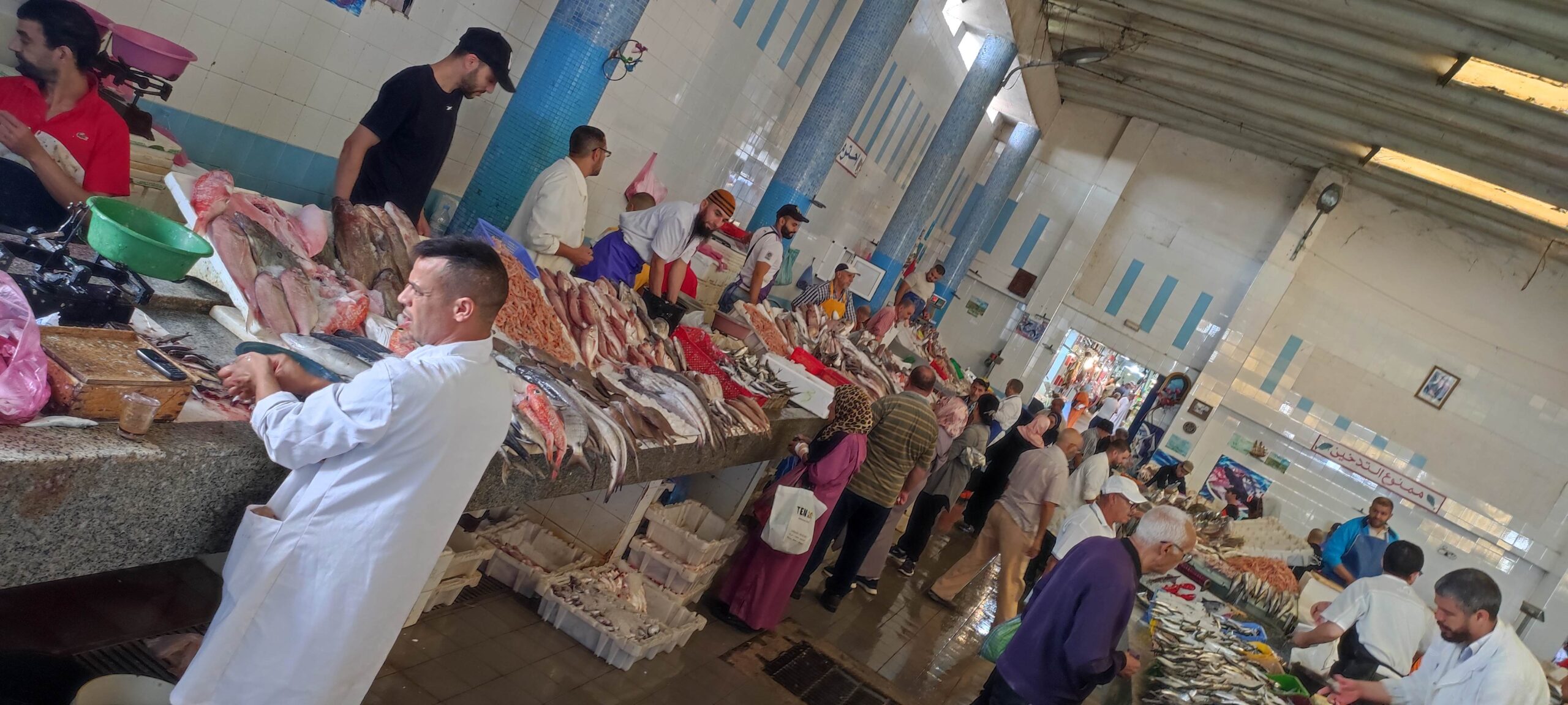 Hoy en día, Alhucemas mezcla, aun siendo una ciudad joven, detalles antiguos y actuales, como una gasolinera Shell del protectorado, con hoteles de cadenas europeas; bares en los que grupos de hombre discuten pausadamente frente a cafés muy cargados, con locales solo para mujeres. En la playa de Cala Quemado ellas no se bañan, se limitan a tomar el sol sin despojarse de ninguna prenda, mientras ellos chapotean luciendo bañadores occidentales. En uno de esos bares en los que solo hay hombres, el Café Belle Vue, cerca de la plaza de Mohamed VI, capto una conversación en alemán: unos de los que hablan es un viajero alemán (debemos ser solo dos los europeos que nos hemos dejado caer por la zona), los otros tres son marroquíes que vivieron en Alemania, donde aprendieron el idioma, y han regresado a su país. Y en el ascensor del hotel coincido con una mujer con vestimenta y aspecto locales, que me habla en inglés y me dice que es de los Países Bajos, con la altanería con la que algunos originarios del Norte de Europa nos hablan a los del Sur.