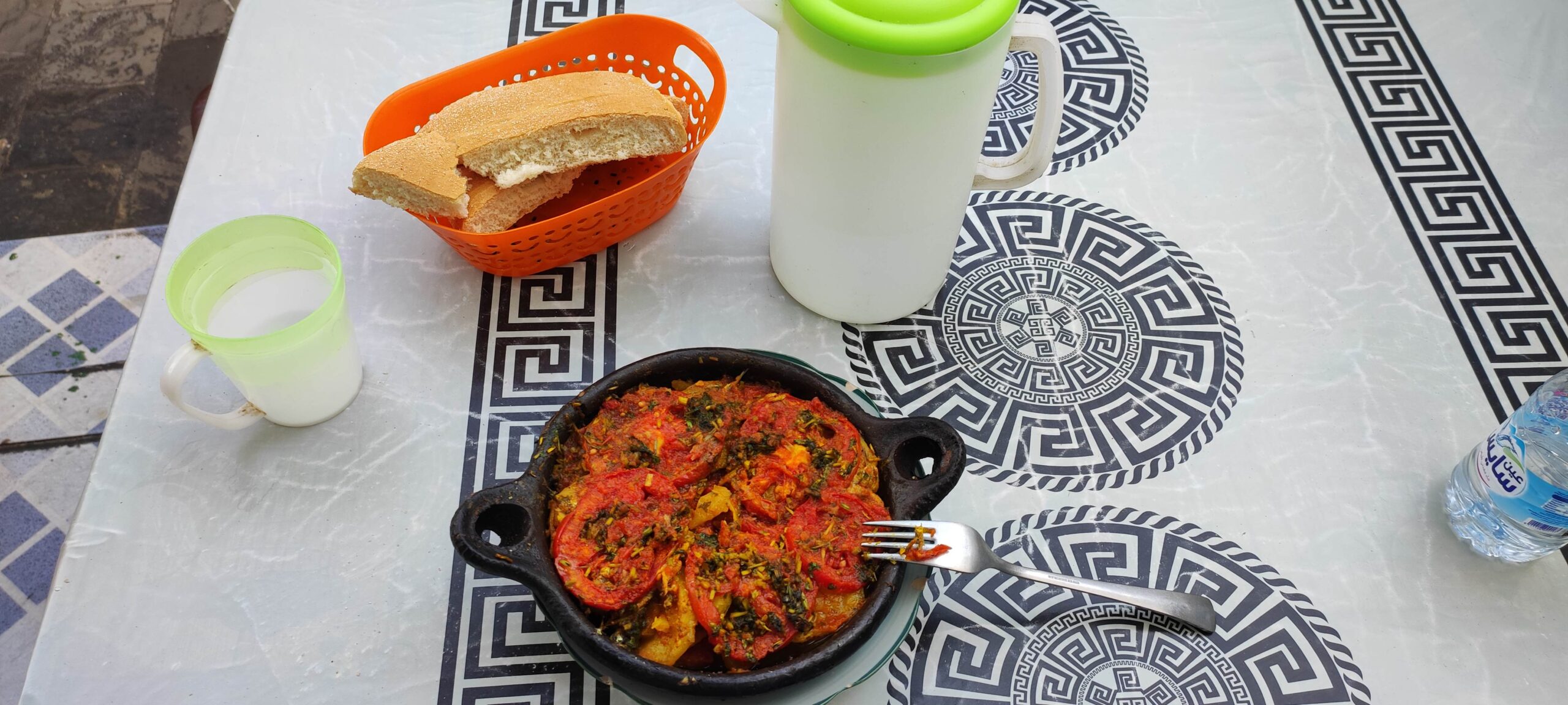 En un puesto callejero me hago con un dulce y la dependienta, una adolescente hija de la panadera, no sabe cómo tratar a un extranjero, además hombre, que compra lo que un marroquí: azorada, pide ayuda a su madre, la que en definitiva me sonríe y me cobra.