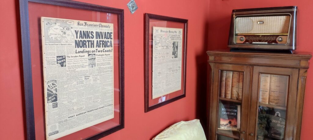 Durante la 2ª Guerra Mundial, el carácter de ciudad internacional y su posición en el mapa convirtió a Tánger en eso que alguien con pocas ganas de inventar metáforas nuevas llamaría “nido de espías”. Y por supuesto la O.S.S (Oficina de Estudios Estratégicos, bonito eufemismo), que luego cambió su nombre a CIA, tenía un agente en la ciudad que trabajaba en la legación. Se llamaba William Eddy, era un hijo de misioneros que había nacido en Siria en 1896, por lo que hablaba árabe, y combatió en la 1ª Guerra Mundial en los marines. Al estallar la segunda volvió al ejército, y en Junio de 1942 utilizaba la cobertura de agregado naval en el consulado de Tánger. En realidad, trabajaba en un cuarto oculto tras una falsa puerta, que ahora se puede visitar, donde se escondía su equipo de comunicaciones. Desde allí ayudó a coordinar el desembarco aliado en marruecos que bajo el nombre de “Operation Torch” terminó expulsando al Afrika Korps del Magreb. La portada del San Francisco Chronicle del 8 de Noviembre de 1942 lo dejaba bien claro: “Los yankees invaden el norte de Africa”.