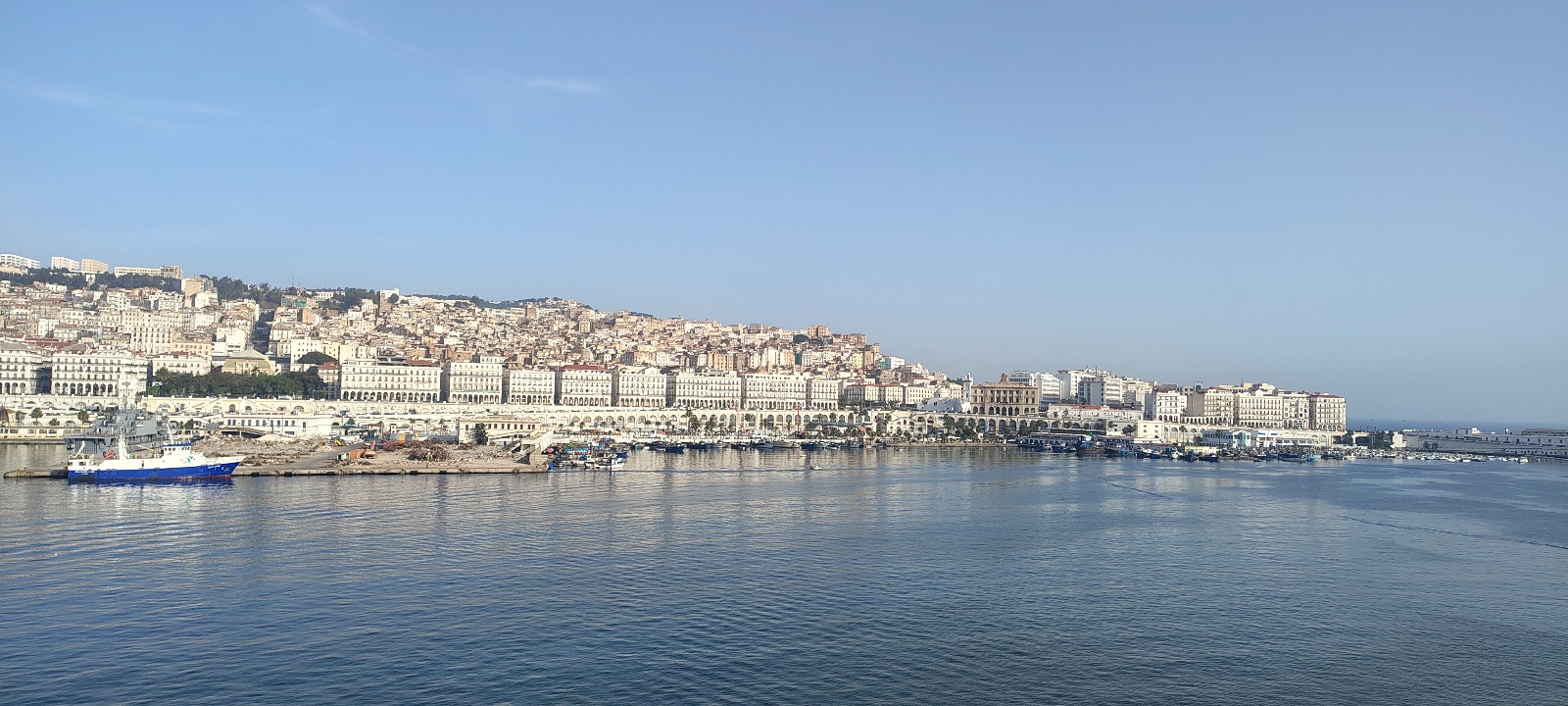 Un rato más tarde, con las dos ruedas y los dos pies ya en tierra firme y toda mi paciencia activada, inicié los trámites de la aduana. Mis anteriores experiencias en fronteras argelinas han merecido ser narradas aquí, y aun en 2025 el acceso al país, además del visado, requiere de una amplia carga burocrática. La preocupación por los trámites me daba vueltas por la cabeza en la media hora que pasé haciendo cola en una nave del puerto bajo, otra vez, un techo metálico, con el calor y la humedad del puerto agobiando. Cuando por fin me llegó el turno, el primer aduanero que me atendió revisó el pasaporte, el visado, la documentación de la moto y las reservas de los hoteles en que supuestamente me iba a alojar en la estancia, otro de los requisitos de acceso, y rellenó unos cuantos formularios.