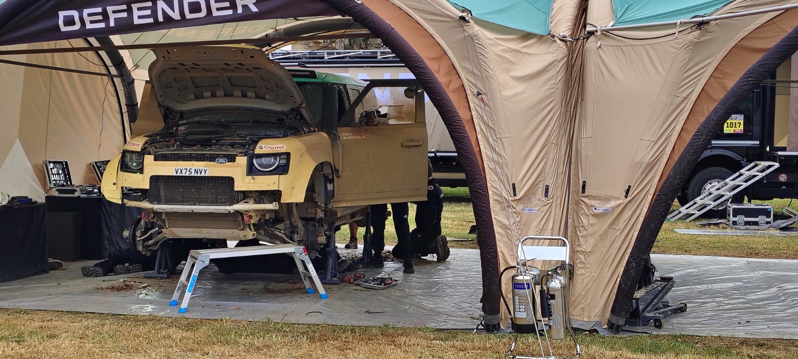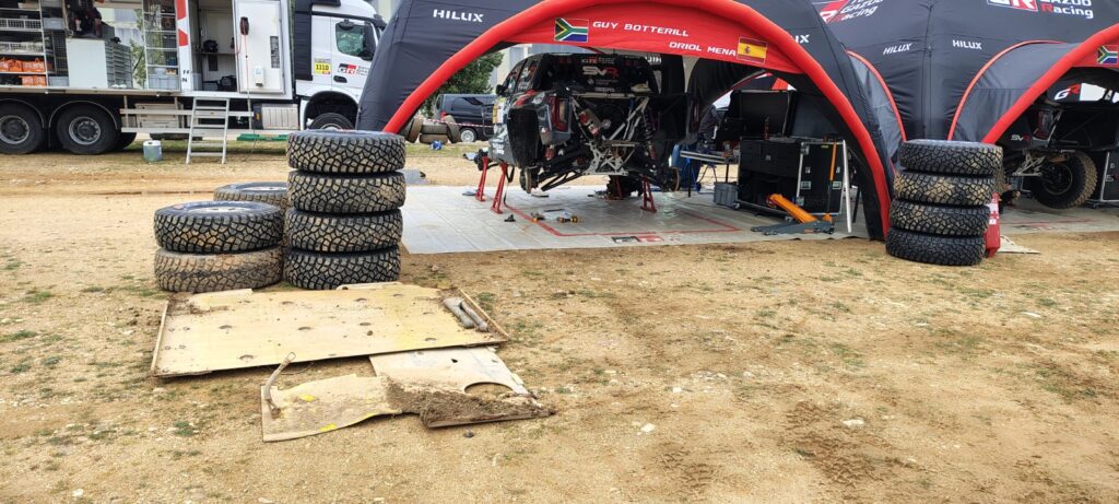 En el parque cerrado de Badajoz solo estaban los Defender, y un vistazo rápido al trabajo que realizaban los técnicos y a los medios disponibles aclara detalles del proyecto. El despliegue de personal, camiones, vehículos de apoyo, carpas, remolques, … es superior al de, por ejemplo, Dacia, que también participa con tres coches solo que en la categoría Ultimate. Y esos medios son necesarios porque cada tarde los técnicos revisaban los Defender con el mismo celo que un Ultimate, sustituyendo hasta los bujes delanteros, lo que inevitablemente genera una pregunta: ¿debe ser ese el espíritu de una categoría de coches de serie?