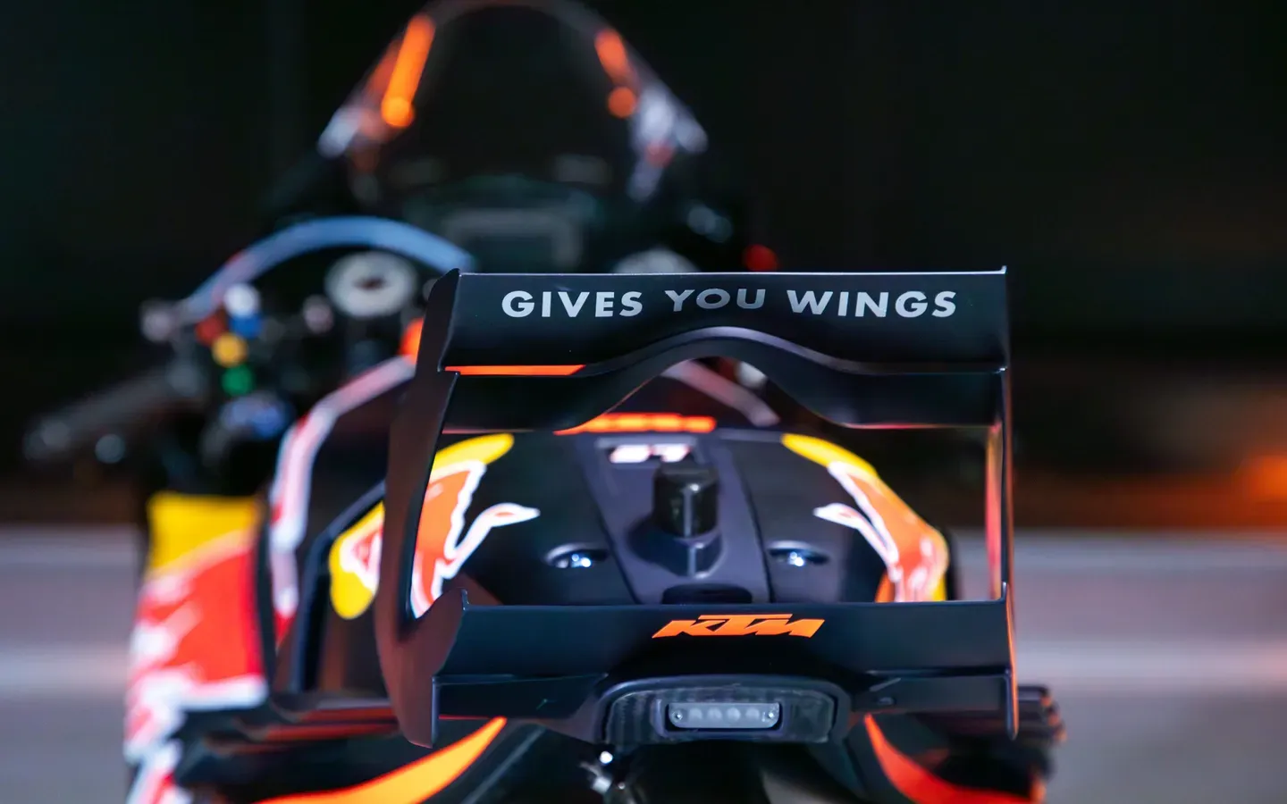 Otra posibilidad que han explorado algunos fabricantes, por ejemplo Yamaha y KTM, es colocar una pequeña ala invertida en posición horizontal en el extremo posterior del colín. El objetivo es, además de guiar el aire, como las aletas “stegosaurus” de Ducati, crear deportancia para pegar la rueda trasera al suelo y mejorar la tracción. Se utilizan alas muy pequeñas por los efectos secundarios negativos que tendría un ala grande: en las rectas, al empujar hacia abajo desde tan atrás, ¡estaría provocando un “caballito”!, y en las curvas generaría una fuerza horizontal hacia el exterior, lo mismo que las primeras alas delanteras horizontales.