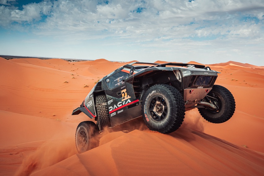 Otra necesidad aerodinámica de los coches del Dakar, en la que no siempre se piensa, es que de cuando salen volando entre dunas o en pistas rápidas, el aterrizaje se debe realizar simultáneamente, o casi, con las cuatro ruedas. Volar y caer de morro reduce la visibilidad de los tripulantes y fuerza la suspensión delantera; volar y caer con las ruedas traseras también limita la visibilidad, y puede llegar a provocar un giro hacia atrás, de modo que el vehículo aterrice en vertical, sobre su parte trasera. Mejor no pensar en las consecuencias.