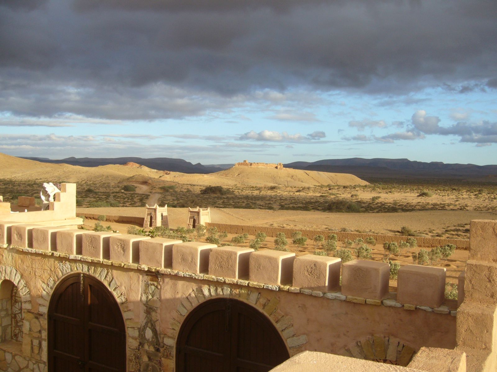 Cargamos el equipaje en nuestros Land Cruiser, y nos subimos al altozano, donde los diez mil metros construidos del fuerte francés que dominaba el entorno y permitía vigilar el cauce del río Draa. Su techumbre y su orgullo se han derrumbado, y no quedan más que algunos arcos y los muros de adobe arañados por el tiempo y la lluvia. Mientras paseaba por entre los restos, imaginaba para qué servía cada estancia y las escenas que allí se pudieron vivir. Lo que parece que fue un despacho con ventanales, quizá el del oficial al mando, parece avergonzarse de su estado: no tiene cubierta, las ventanas ya no son más que agujeros en las paredes, pero allí debió haber una recia mesa de madera, frente a la que se cuadraron muchos militares, con la silueta del oficial al mando recortándose al resol del desierto que se vigilaba por el ventanal.