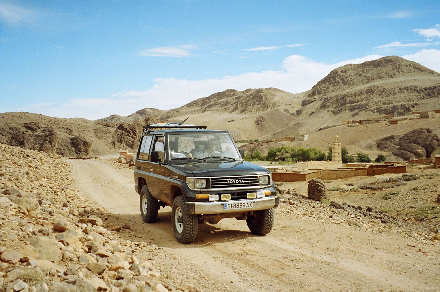En otras ocasiones rodamos por llanuras anchas y despejadas, cruzadas por pistas en las que la velocidad del vehículo no depende más que del valor de quien lo conduce. Cuando se encara una de estas rayas de tierra como trazadas por un tiralíneas, de tierra dura cubierta de arenilla deslizante, la sensación es de que todo irá bien mientras el mundo siga siendo recto y plano, pero si hay que girar, frenar o ambos, puede suceder lo mismo que a un colega de categoría, que acabó con tres vueltas de campana. Por eso no me atreví a pasar de cuarta a 120 de marcador, que visto ahora, en frío, es exagerado para carretera de pueblo, t casi demencial para pista de tierra.