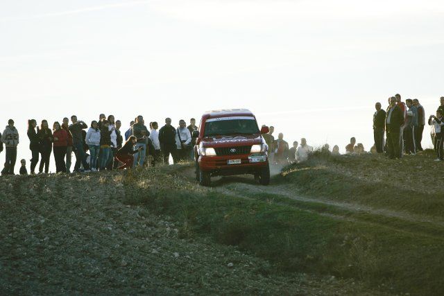 El segundo tramo tenía un inicio mucho más lento que el primero; de hecho, en la primera hora solo hicimos 45 Km: zonas de mesetas, casi páramos, con monte bajo y mucha piedra suelta, lista para dañar los bajos y rajar los neumáticos. Poco después comenzamos a dudar en algunos cruces, a encontrar coches perdidos y a perdernos nosotros: rodábamos por zonas en las que los caminos o se entrecruzan o casi no se emplean, por lo que en muchas ocasiones o no se ven o al menos uno duda al tomarlos. En un momento dado, al alcanzar uno de estos páramos, salió por nuestra derecha un Hilux; iniciamos el descenso y nos encontramos, subiendo, un Montero; el Hilux, que venía detrás de nosotros, pensó que el Montero iba bien y se dio la vuelta; Alvaro y yo comenzamos a dudar y decidimos seguirles; en el siguiente cruce ellos siguieron recto y nosotros giramos a la izquierda, y no les volvimos a ver hasta el parque cerrado de Cuenca varias horas más tarde.