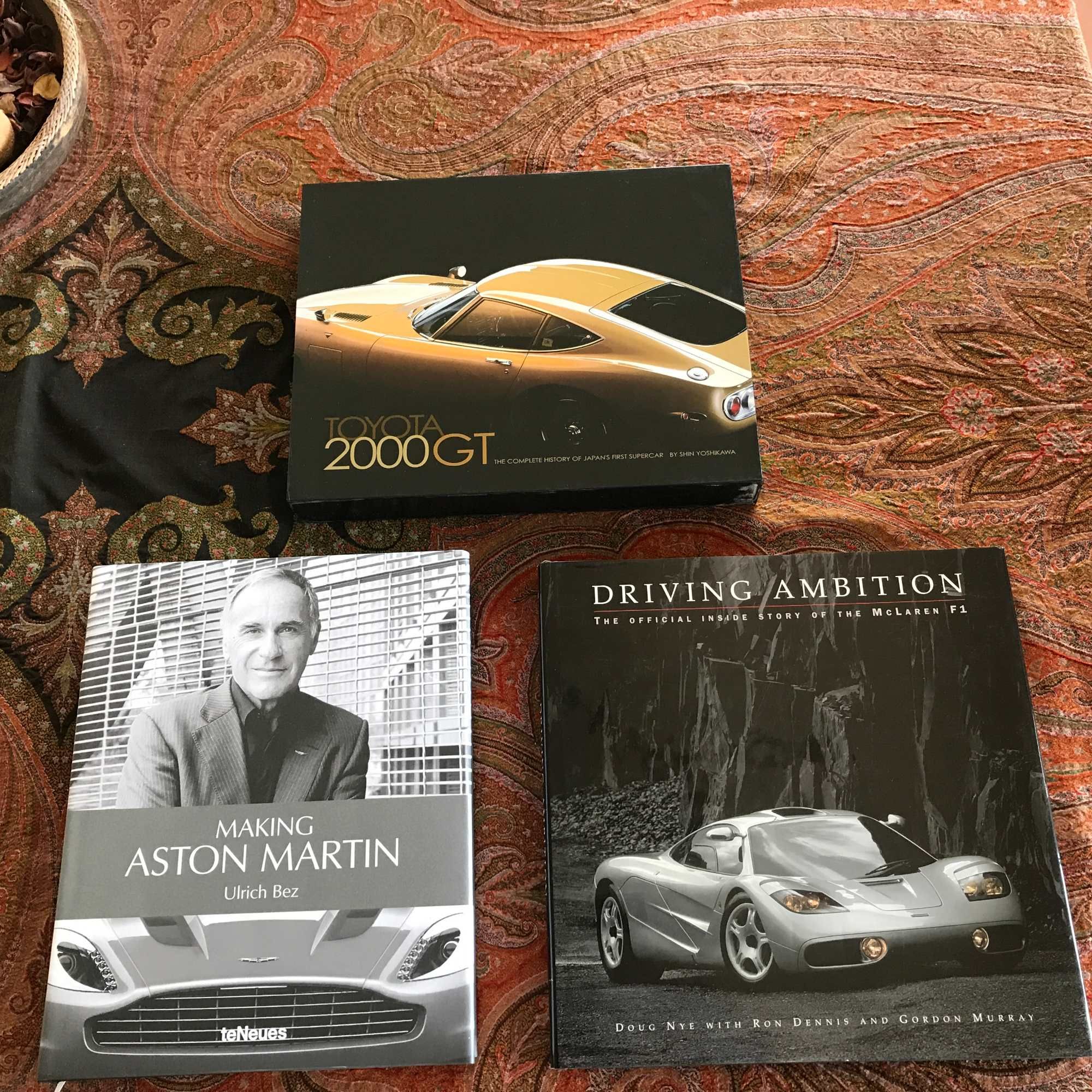 Tengo en casa unos cuantos de este tipo que compré ilusionado, leí con interés y repaso de vez en cuando, y de algunos he hablado en este blog: la historia de Aston Martin contada por Ulrich Bez (lo compré en la librería que hay frente a la entrada antigua de la fábrica Ferrari en Maranello), la trilogía de Paolo Tuminelli (conseguida en baratillos), y los del Toyota 2000 GT (me hice con él en el museo de Toyota en Japón) y el McLaren F1 (localizado en una librería de Sidney o Melbourne, no lo recuerdo bien).