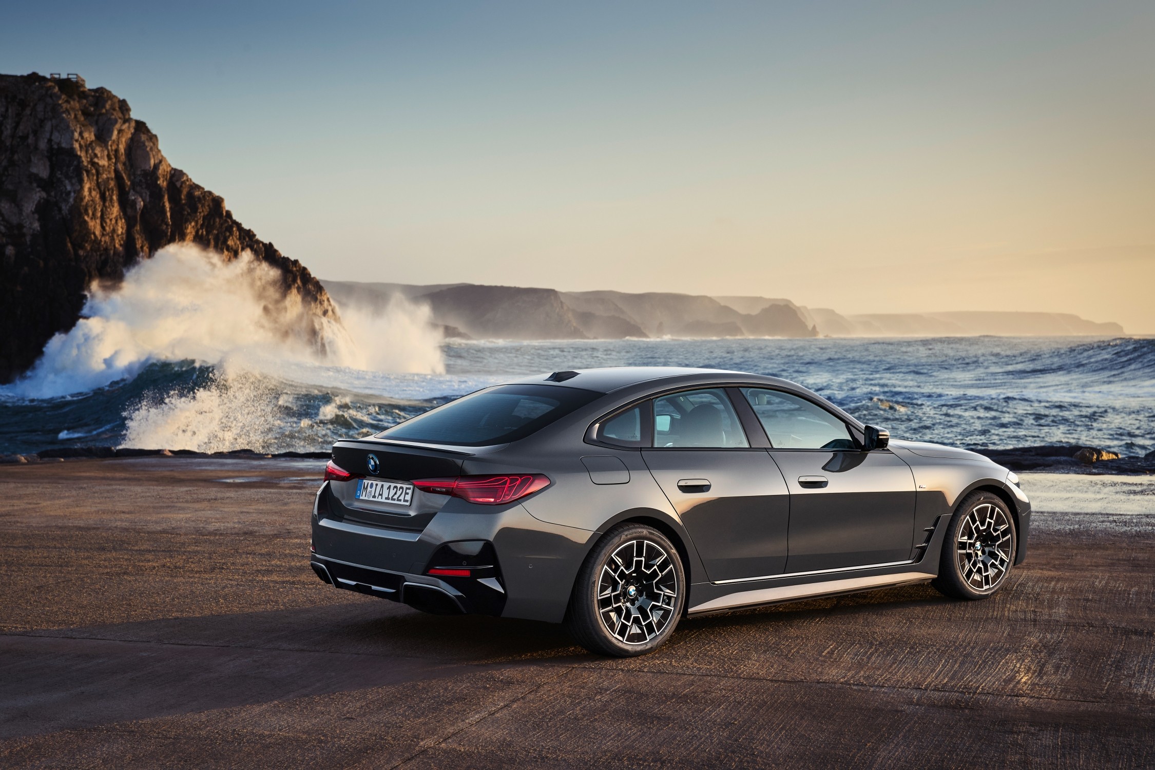 BMW i4, eléctrico: no tiene escapes aunque lo parezca, y las taloneras tapan la batería.