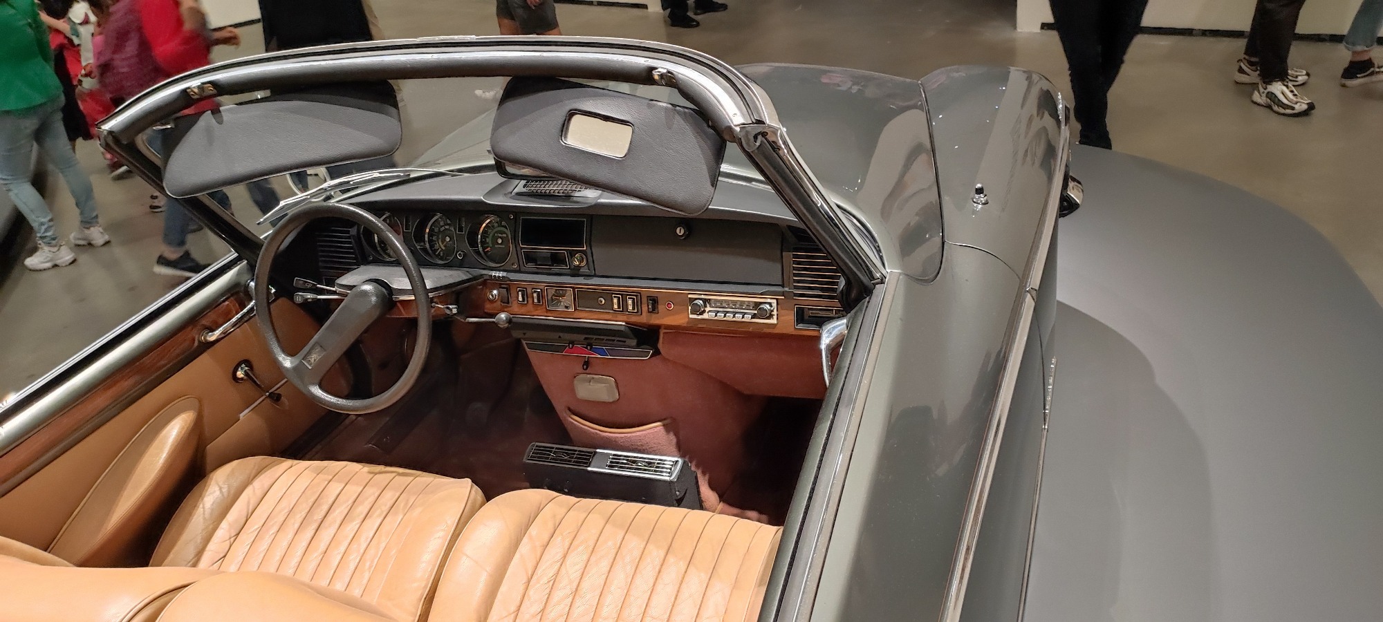 Modificar un DS está, por tanto, más cerca de la herejía que del atrevimiento, pero el carrocero parisino Henri Chapron se lanzó a convertirlo, nada menos que en un descapotable de dos puertas. La escasa producción (1.365 unidades) se realizó entre 1963 y 1972, y el modelo expuesto en el Guggenheim pertenece a la serie limitada “Palm Beach”. Es el último de los 32 fabricados, y mantiene sin restauración el interior original y la pintura de carrocería “Gris Tudor”.