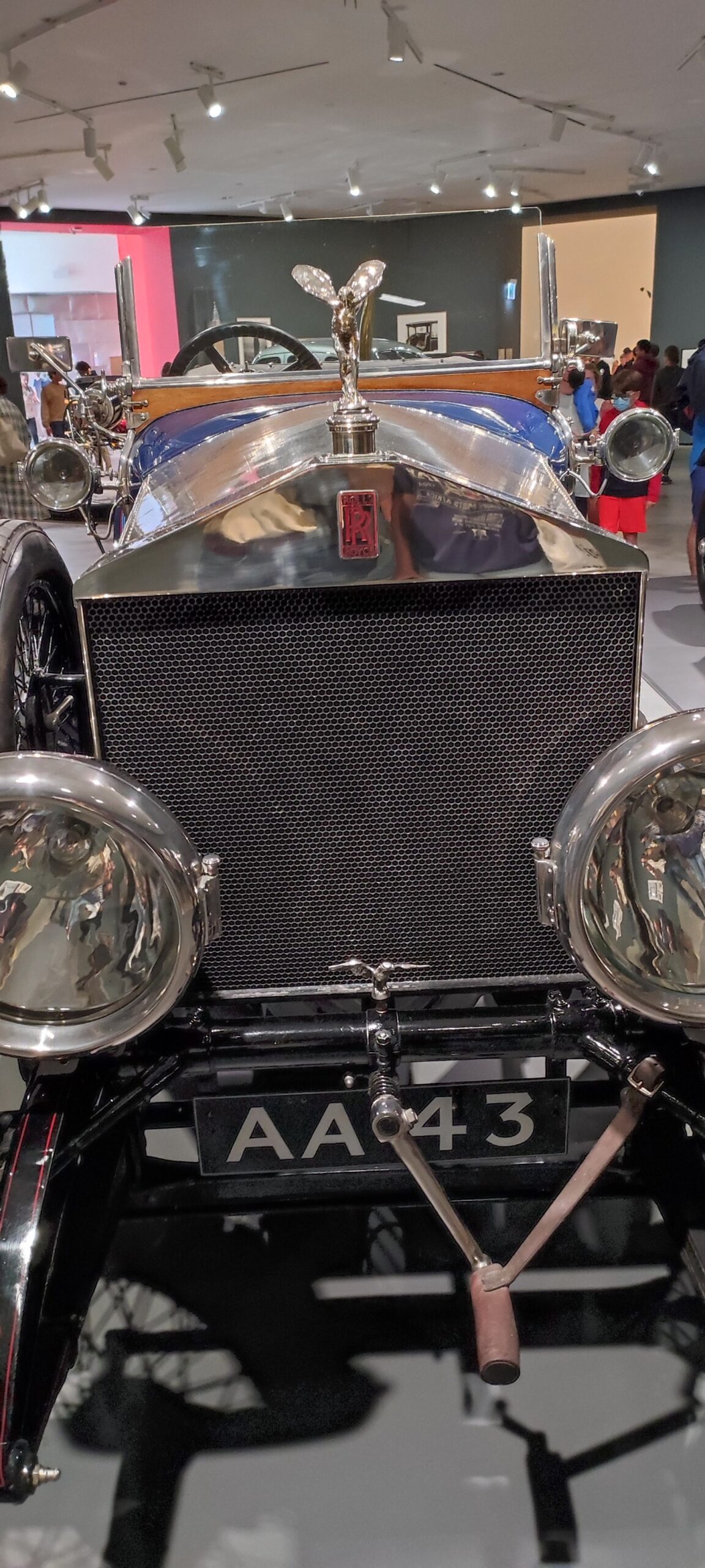 El Rolls Royce 40/50 “Alpine Eagle” de 1914 es un modelo de transición: aun mantiene elementos heredados de los carruajes con caballos, como las ruedas de madera y de gran diámetro, o los estribos, y a la vez anticipa características del momento en que los coches toman formas propias: parabrisas, retrovisores exteriores y un visible motor central que marca con claridad esa prestigiosa distancia entre el eje delantero y el salpicadero, que destaca a los coches señoriales.