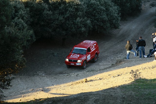 Nos esperaba la Baja Portalegre, cuatro días de carrera puntuable para la Copa Internacional FIA de Bajas TT, que la mayoría de los equipos del Dakar tomaban como puesta a punto final, dos meses antes de la salida del raid de los raids. Allí estaban todos los buenos, … y nosotros, con nuestro vetusto Land Cruiser de hacía diez años, con 160.000 km sobre su chasis. La carrera era seria de verdad, con tramos largos, de los de muchas horas cada uno, y zonas en las que nuestro coche alcanzaba puntas de 150 km/h. Ahí pensaba dos cosas: la primera, traída por la lógica: “Si nosotros hacemos 150, ¿qué hacen los buenos?”; y la segunda, por el miedo: “Que no haya que frenar de pronto, porque parar dos toneladas de coche a 150 sobre tierra suelta, …” y ahí se paraba la reflexión, mejor era no cuantificar los metros necesarios para frenar en esas circunstancias.