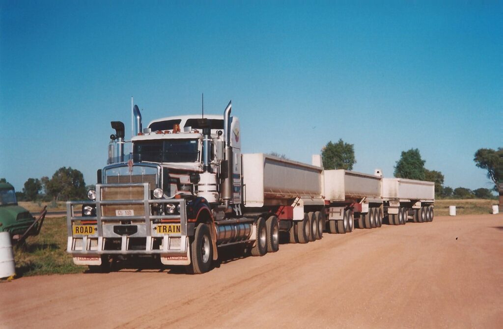 Hace falta un cierto valor para plantarse de noche en el centro de una carretera del Outback y hacerle señas con la intención de que se paren a unas luces que se acercan. ¿Quién será?, ¿qué vehículo?, ¿sería de fiar?, incluso, ¿se parará o intentará atropellarnos? Según se acercaban las luces crecía nuestra ansiedad, que desapareció en cuanto entramos en su zona iluminada, porque oí claramente como el conductor de lo que fuera aquello cortaba gas y comenzaba a frenar. Cualquier vehículo tenía sitio para detenerse a nuestra altura, pero daba la casualidad de que lo que habíamos parado era un auténtico “road train” australiano, que necesita una auténtica barbaridad de metros para vencer la inercia de varios remolques lanzados.